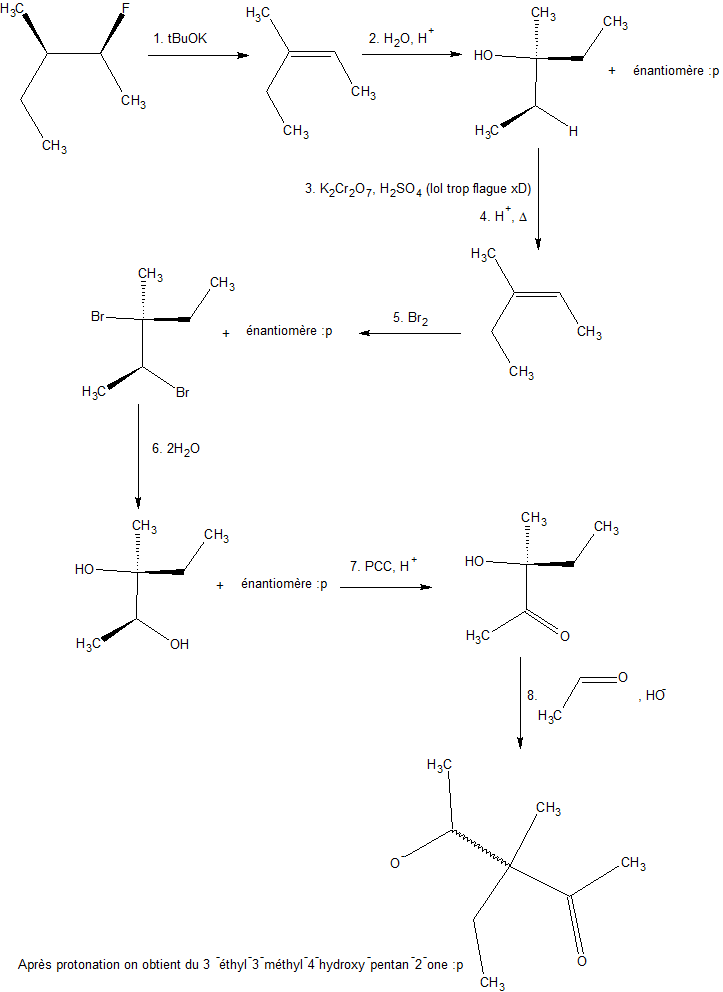 Pour la question du proton, moi aussi je me suis fais avoir, car je me suis précipité (par amour de l'orga :mrgreen: ), on fait tu ne peux pas déprotoner sur le carbone n'ayant pas de H, tu attaques donc de l'autre côté. Voilou j'ai essayé de répondre à ta question, en éspérant que ça t'aidera. @+ :D