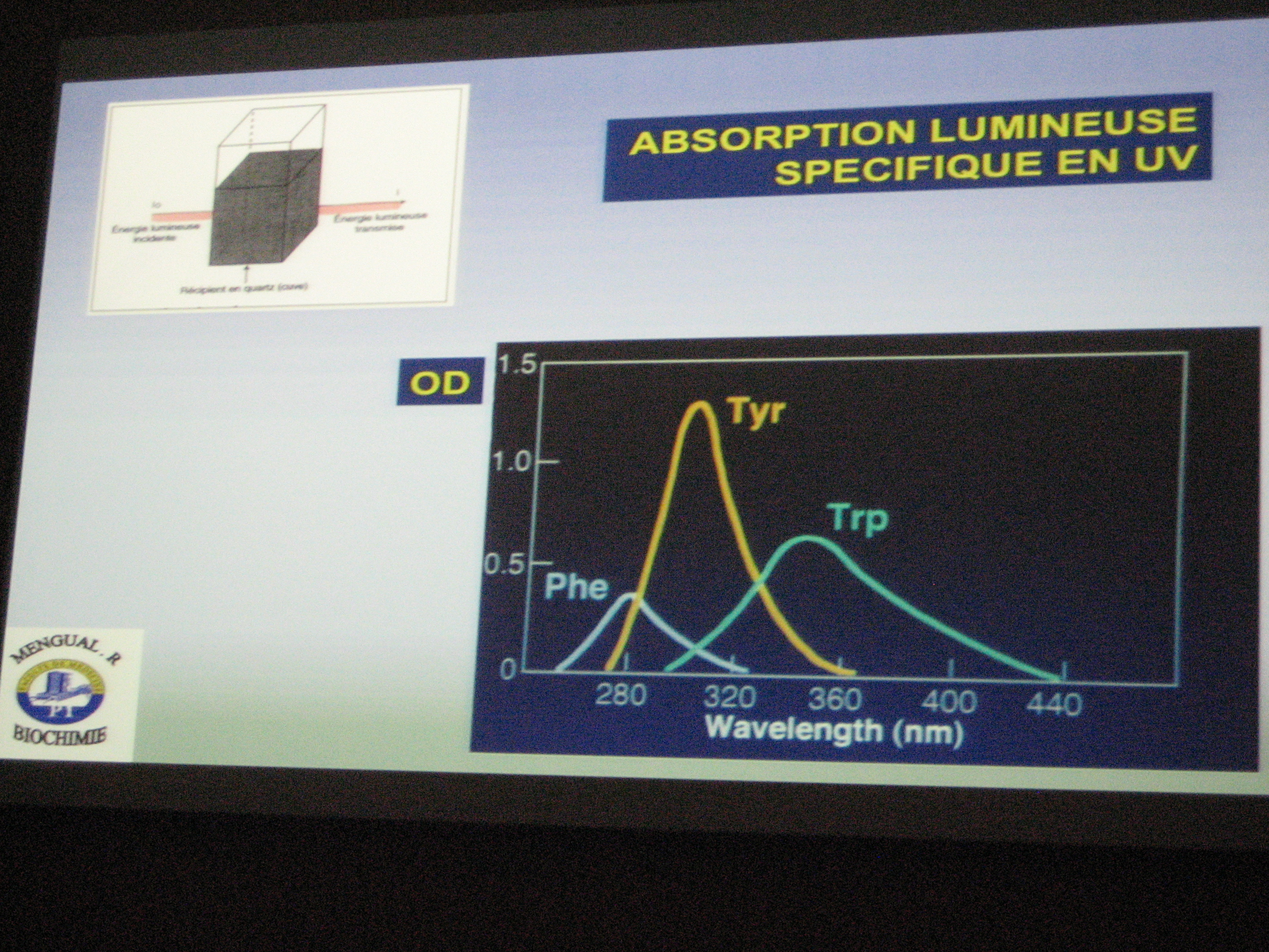 Dawn a écrit:Et que par la suite on en déduit le graph est le fait que seul la phénylalanine, la tryptophan et tyrosine absorbent les UV ??