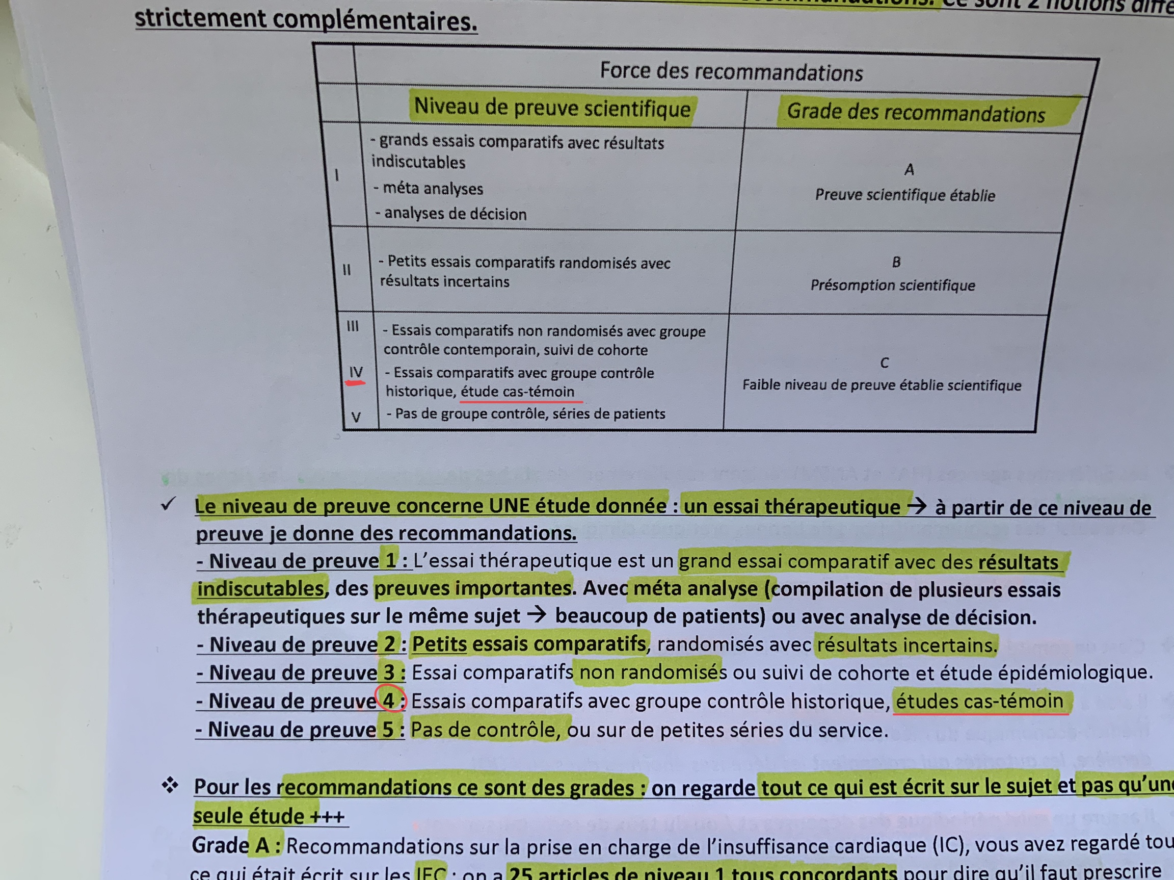 dans la ronéo les études cas-témoins fournissent un niveau de preuve de niveau 3
