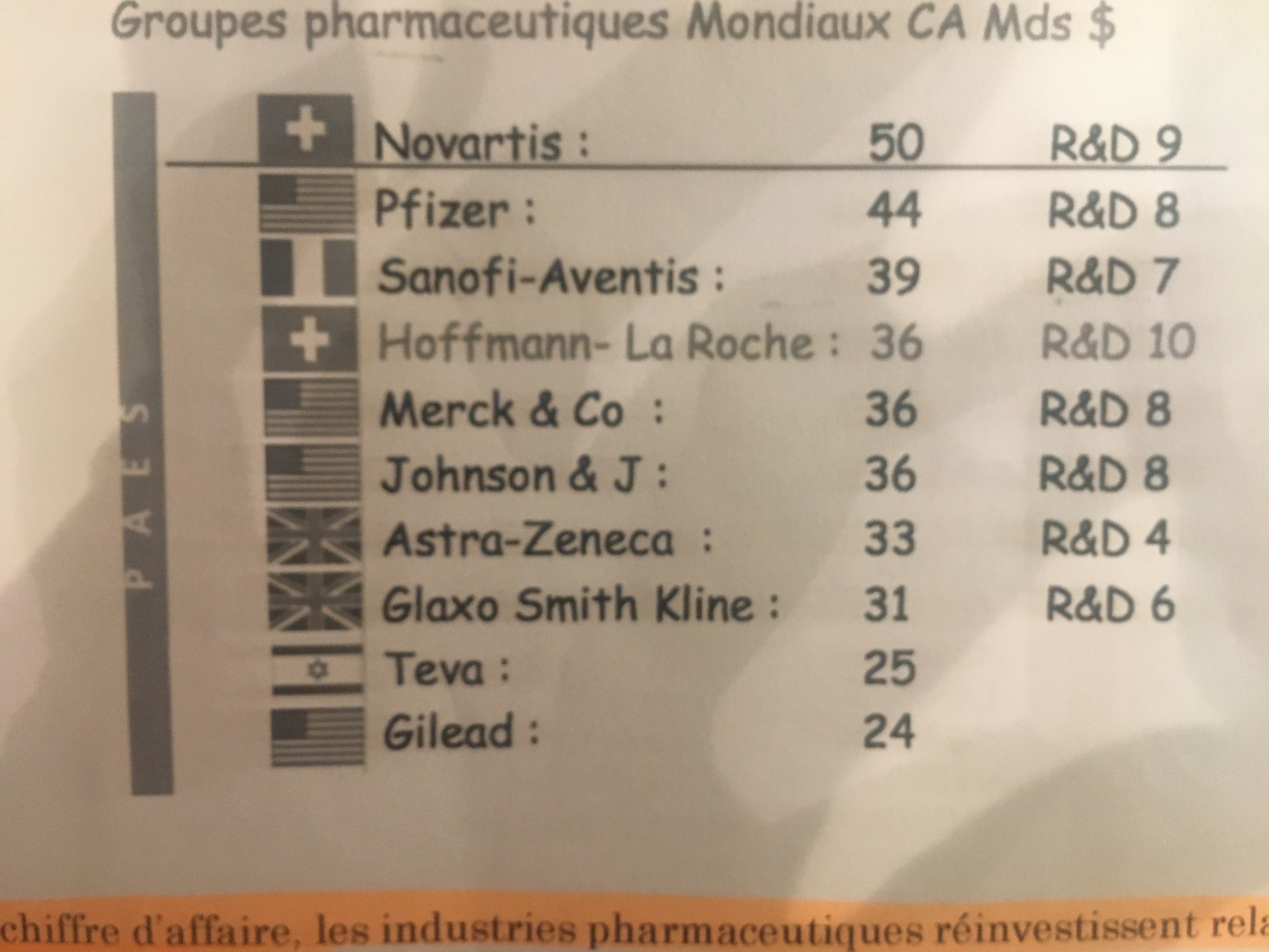 Re: Classement industries pharmaceutiques