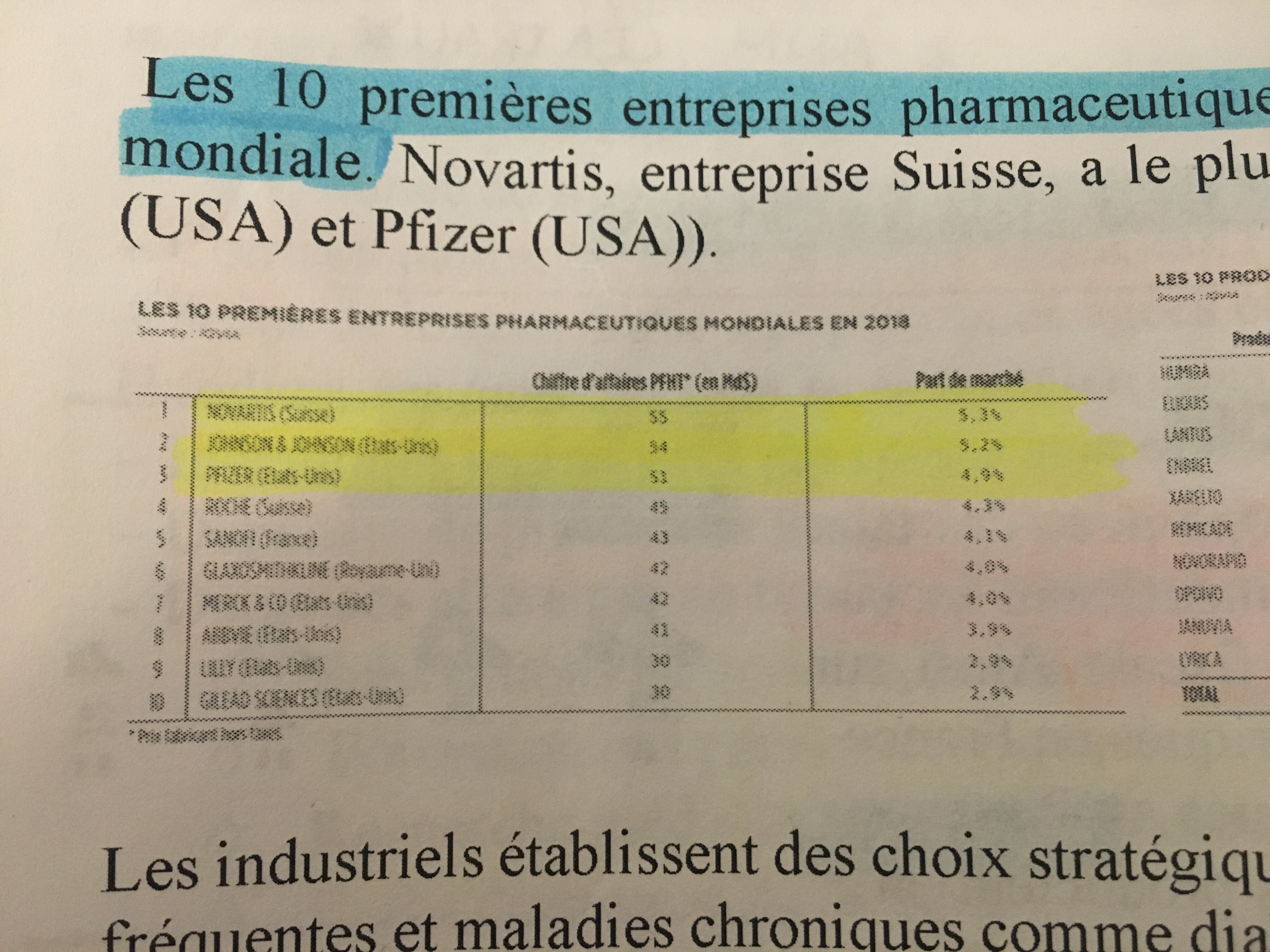 Petite question concernant le CA du top 10 des industries pharmaceutiques qui différent énormémenttttt selon la diapo de Drici ou de Viard + Johnson et Johnson est top 2 chez Viard et top 6 chez Drici, on retient Drici du coup ? Mais pourquoi cette différence ahah ?