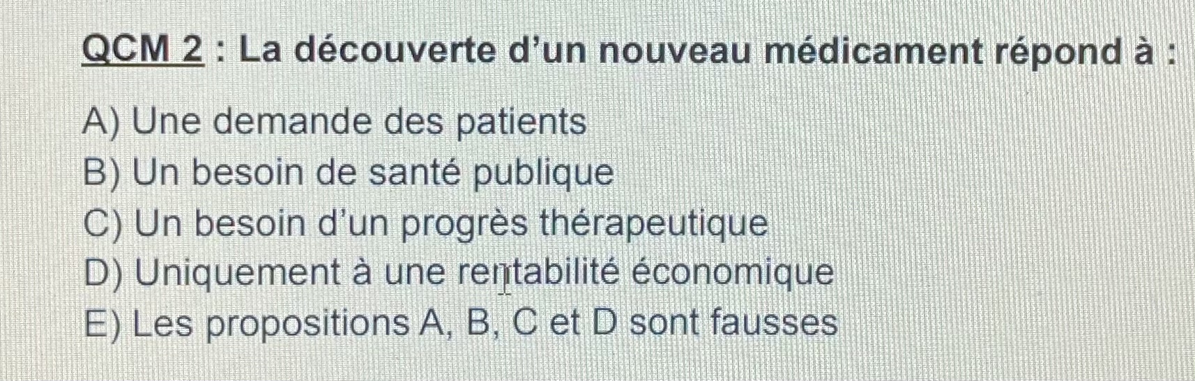 Pour ce QCM la correction mets BC mais il me semble que c'est CD non ? Un besoin thérapeutique et une rentabilité économique ?