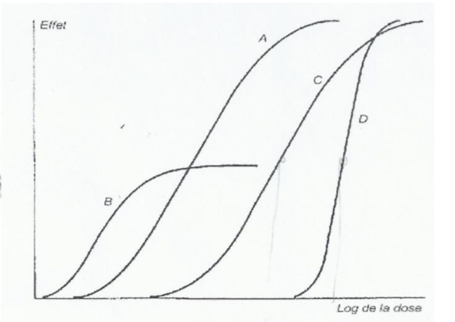 Les tuteurs comptent vrai comme quoi " le médicament C est plus puissant que le médicament D" avec comme correction " Vrai : La courbe est plus décalée vers la gauche. CE50 est plus petit, concentration pour atteindre la moitié de l’effet max plus faible".