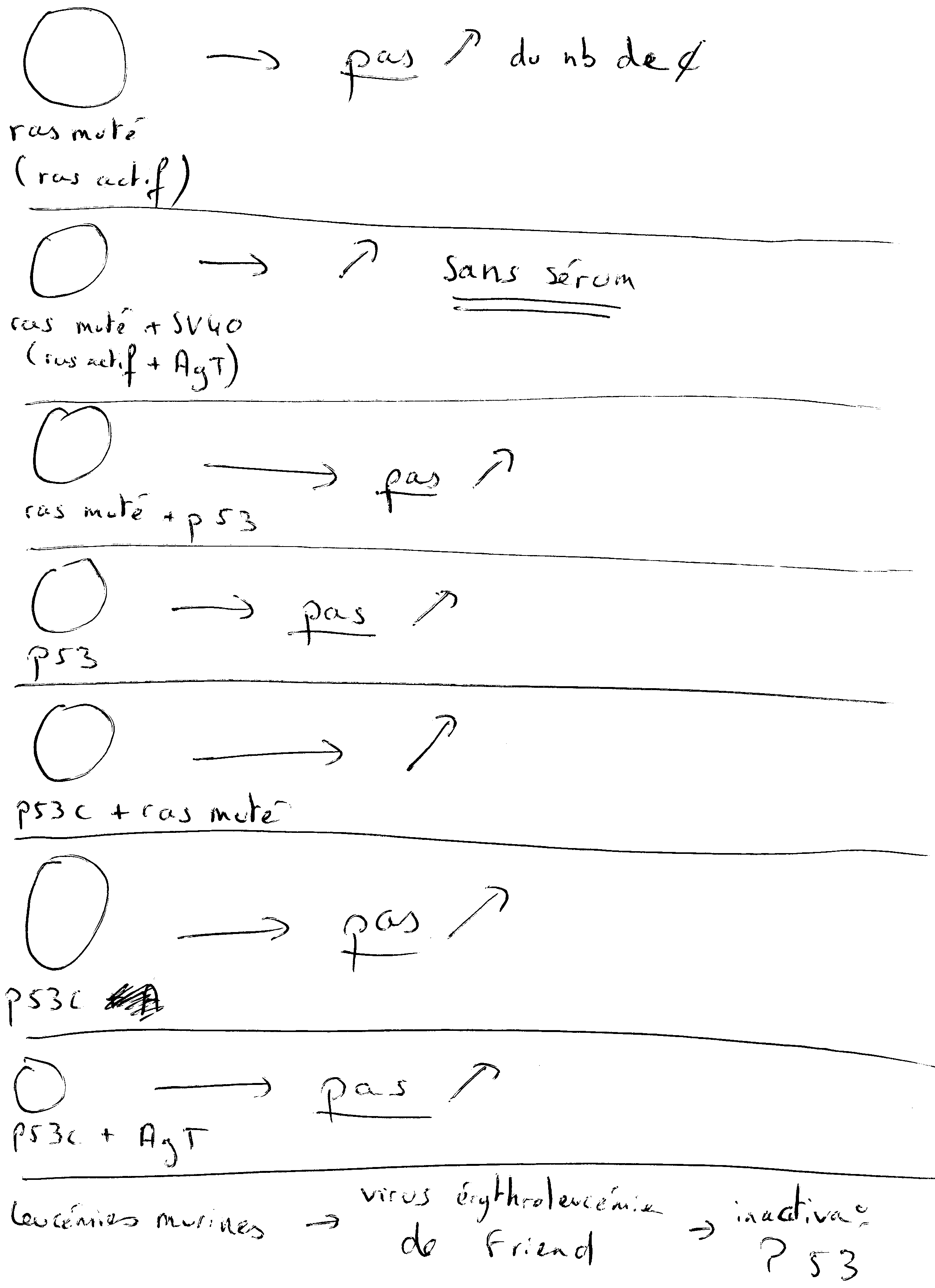 Pour l'item C du QCM 9 : " suggèrent que la transformation cellulaire peut nécessiter plusieurs évènements " je ne comprend pas pourquoi ce n'est pas plutôt démontre parce que lorsque l'on à ras muté tout seul on à pas de division,ras muté + SV40 on à transformation,et ras muté + p 53 = pas de transformation. Alors j'en est déduit que ras muté tout seul ne pouvait pas permettre une transformation. De plus,quand on à p 53 c + gène ras muté => transformation or p53c + T => pas de transformation. Donc p 53 c ( ou gène ras muté tout seul) n'est pas suffisant pour impliquer une transformation donc on à " démontré que la transformation cellulaire peut necessiter plusieurs évènements " .