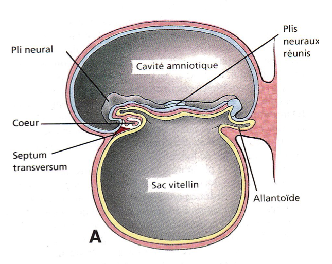 slt, dans la roneo d'embryo ya marqué "la tete va aussi refouler une partie de la cavité amniotique, formant un pli. ce pli da la cavité amniotique passe sous le coeur, sous la tete: c'est l'ebauche de du futur diaphragme."