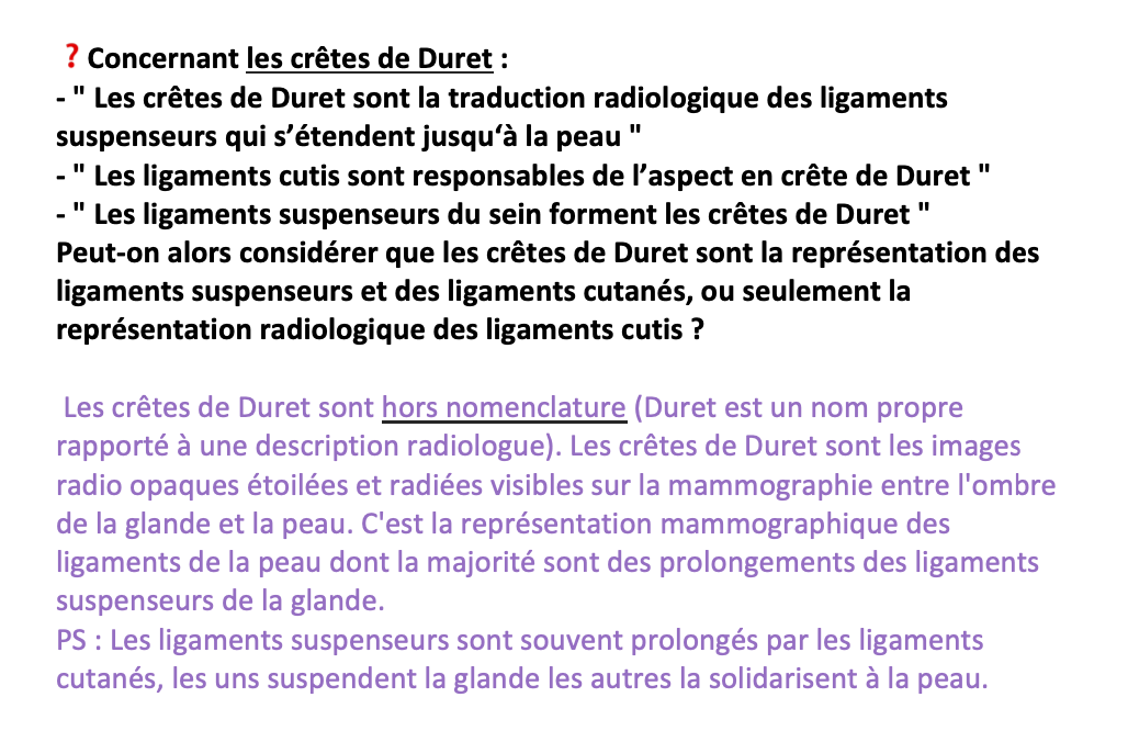 → Tu ne peux donc parler des crêtes de Duret que si on est dans un contexte radiologique (pour une mammographie)