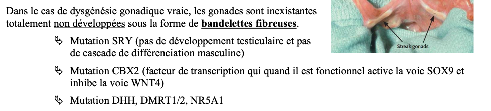 Alors que SRY permet la differenciation gonadique dans le sens masculin, du coup si c'est muté comme la gonade etait deja formé elle sera juste indifférencié quoi car l'expression de SRY se fait apres SF1 il me semble?