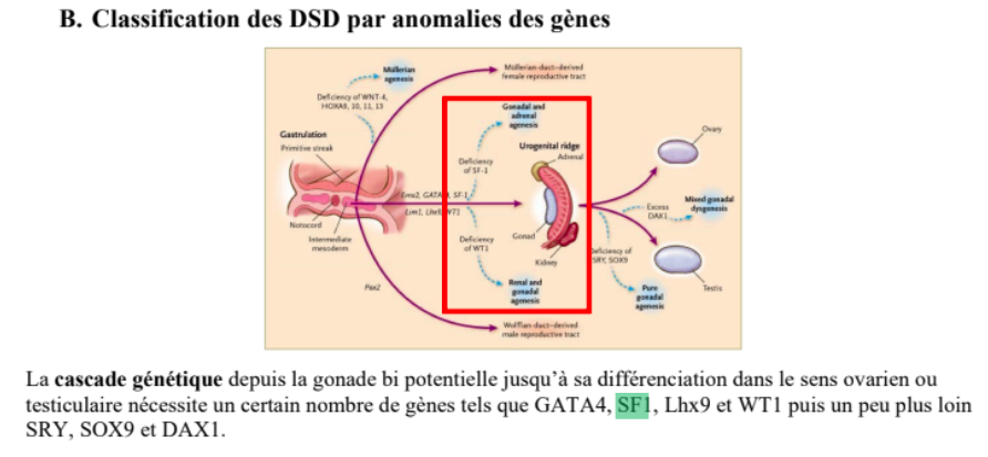 Concernant ce qcm ilme semble pour l'item B on doit dire que si on a la mutation de SF1 on peut pas former une gonade indifférencié donc absence totale de formation de la gonade?