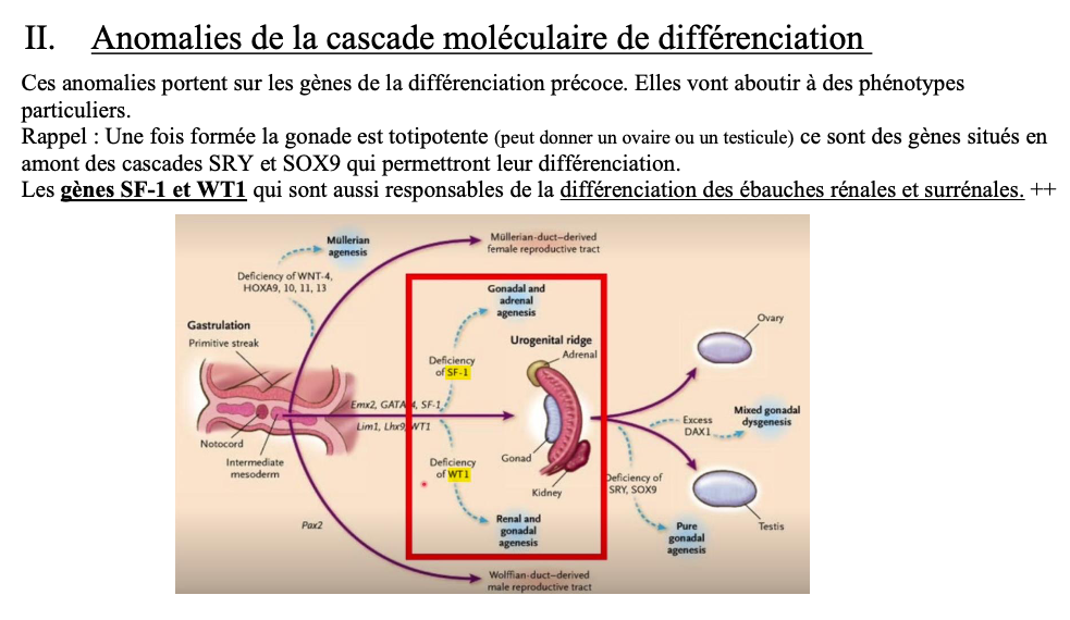 Dans la fiche on dit que les gènes WT1 et SF1 sont responsables de la mise en place des structures rénales et surrénaliennes. J'avais compris que c'était WT1 : participe aux structures rénales et SF1 : participe aux structures surrénaliennes