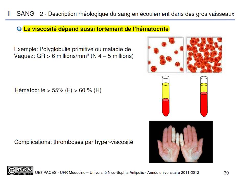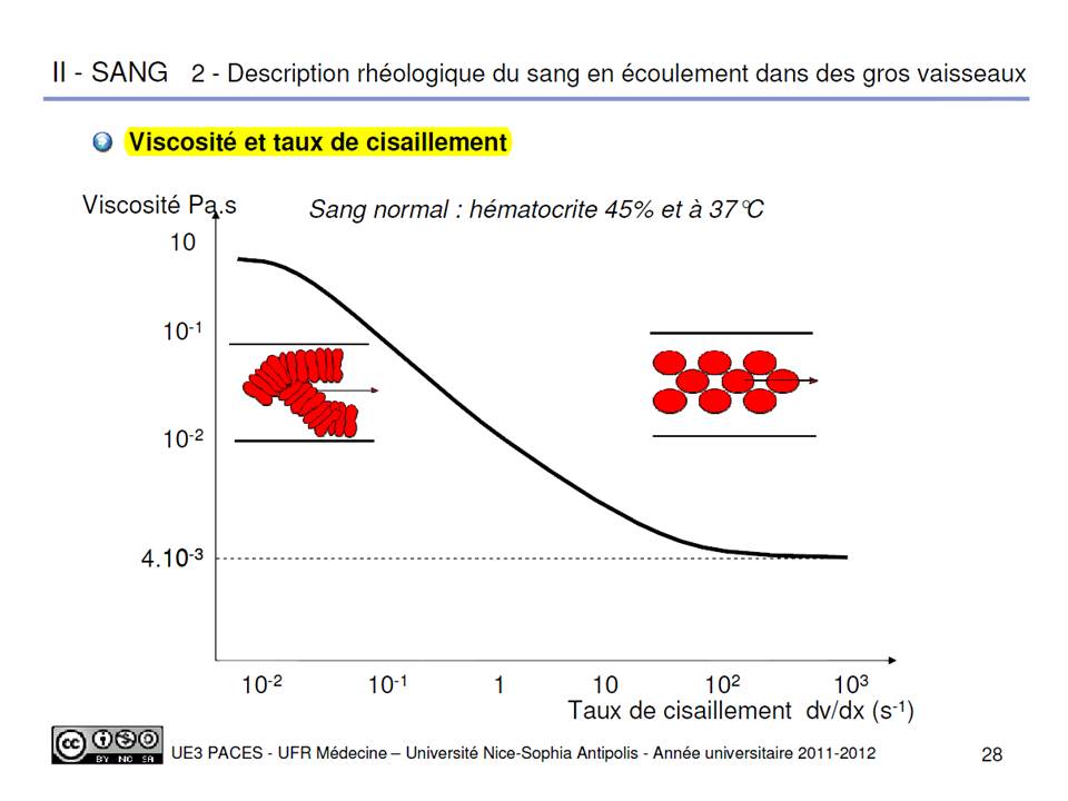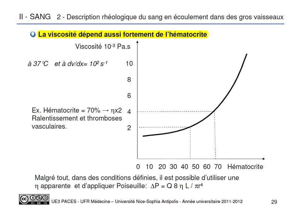 Non justement la viscosité dépend de l'hématocrite :shock: et oui l'hématocrite est une caractéristique intrinsèque de la viscosité, c'est plutôt la viscosité qui varie avec le taux de cisaillement comme le prouve la diapo du prof sinon il aurait clairement annoncé que la viscosité dépendait du taux de cisaillement, et c'est important de faire cette différence. :)