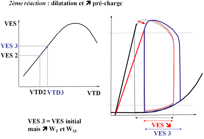 Or, la réaction de l'organisme est bien d'augmenter la précharge (après avoir baisser la contractilité d'ailleurs) pour retourner au VES initial.