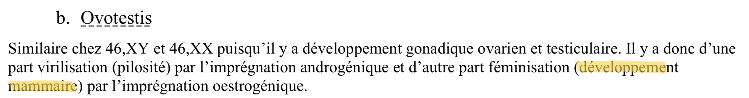 alors j’ai un problème avec le qcm1 item D : « une gynécomastie est observée chez les individus chimères 46XX/46XY »