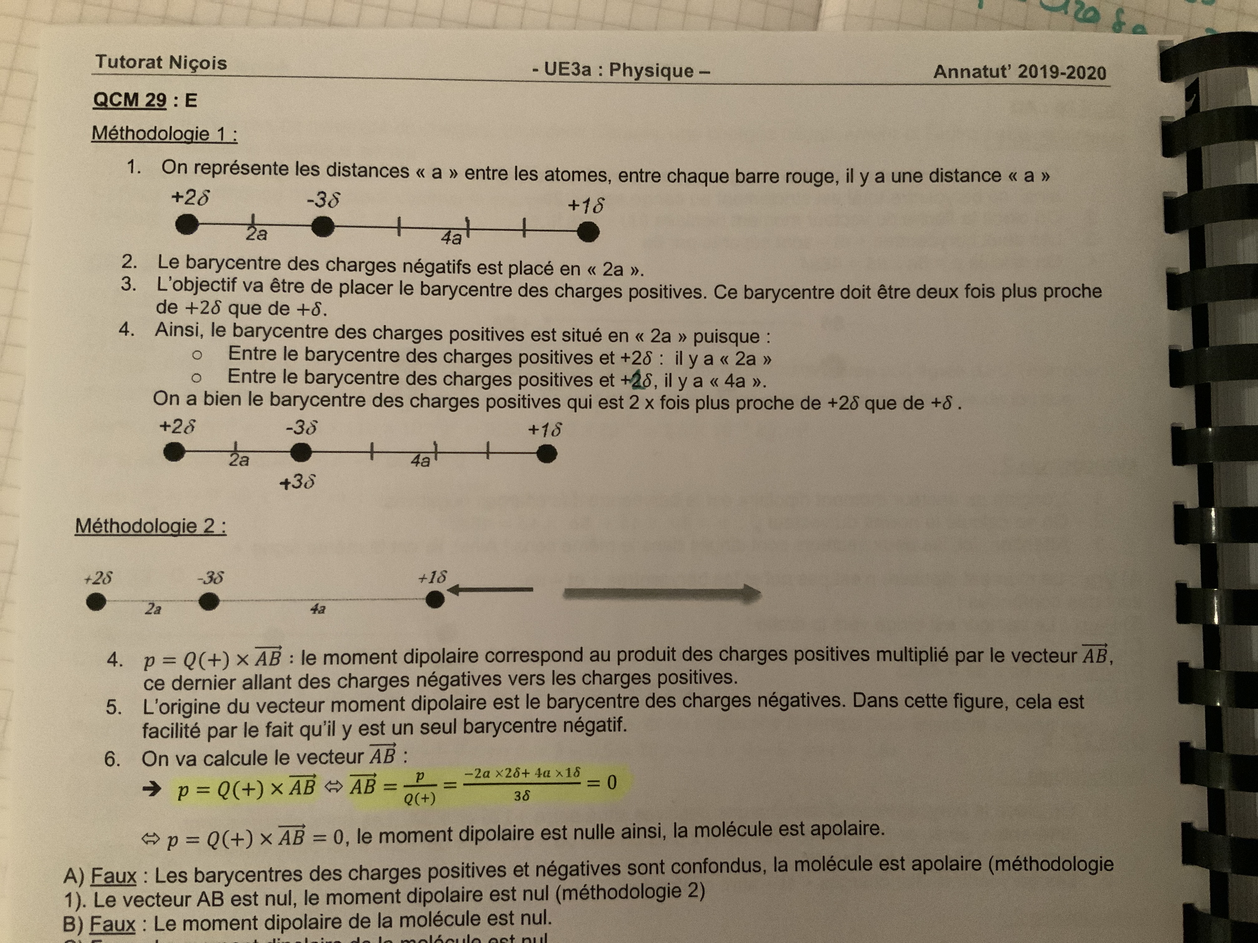 Et dans le QCM on donne la meme méthode mais qu’on divise par la charge du barycentre.