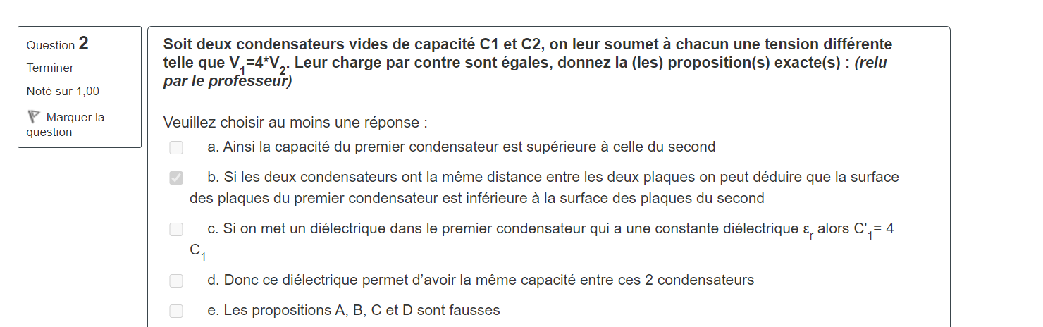 Je me posais une question pour le QCM 2, litem "c. Si on met un diélectrique dans le premier condensateur qui a une constante