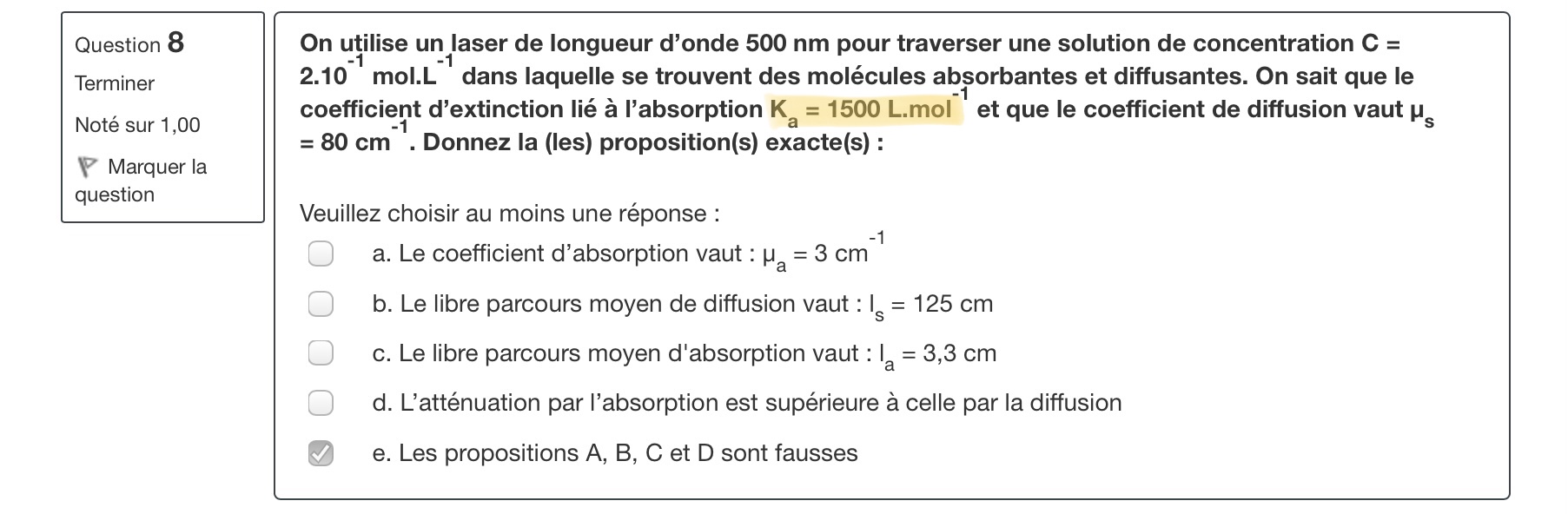 J’ai mis E a ce QCM car on avait pas l’unité de K en entier ( en tout cas moi je voyais pas si c’était en m ou cm)