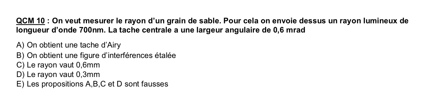 je pense que c'est une erreur tout simplement, je ne vois pas ce que ça peut être d'autre ...Du coup si on fait le calcul avec 700 nm ça donne environ 1,4 mm donc le correction devient A. Désolée de cette erreur, je mettrai les erratas annatut à jour :wink2: