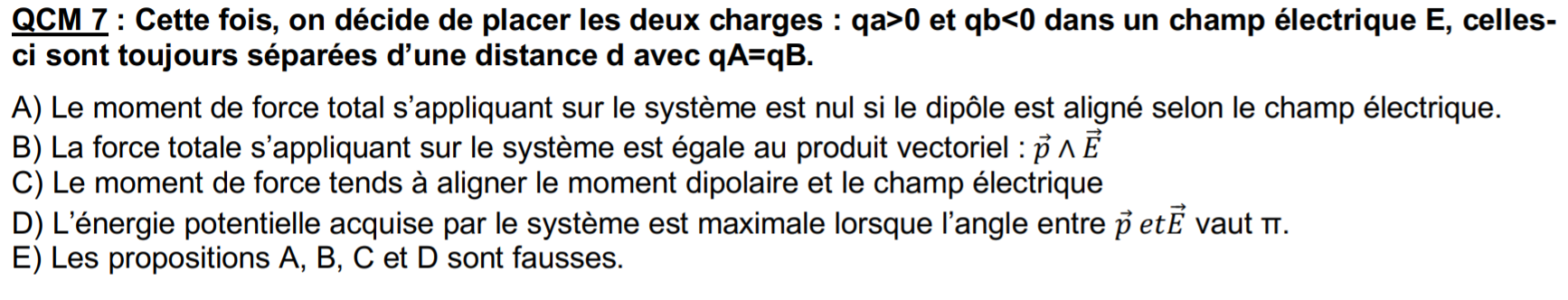 La force totale est certes nulle. On pourrait dire que le moment de forces est égal à p vectorielle E = vecteur nul, non ?