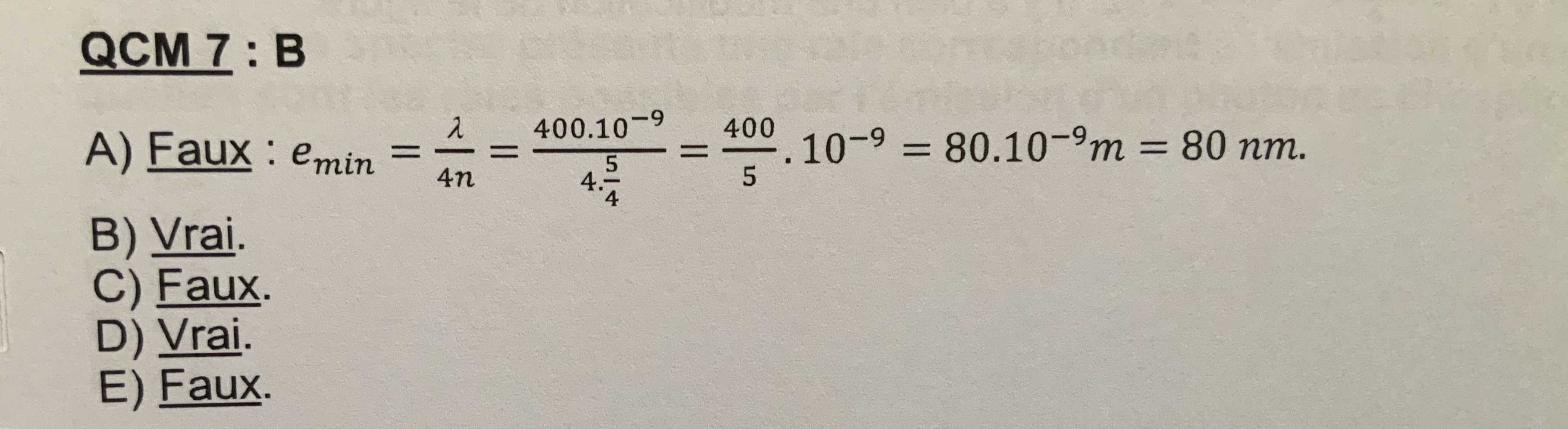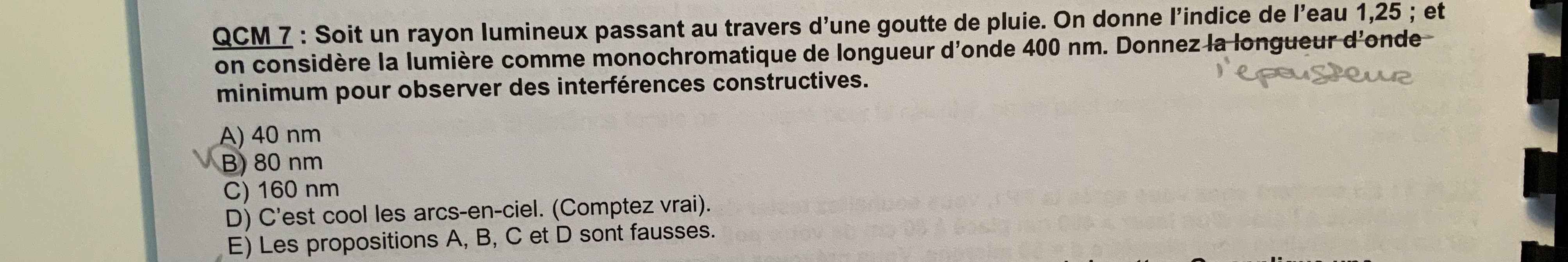 Déjà petite errata dans l’enoncé de ce QCM c’est l’épaisseur qu’on cherche pas la longueur d’onde. :D