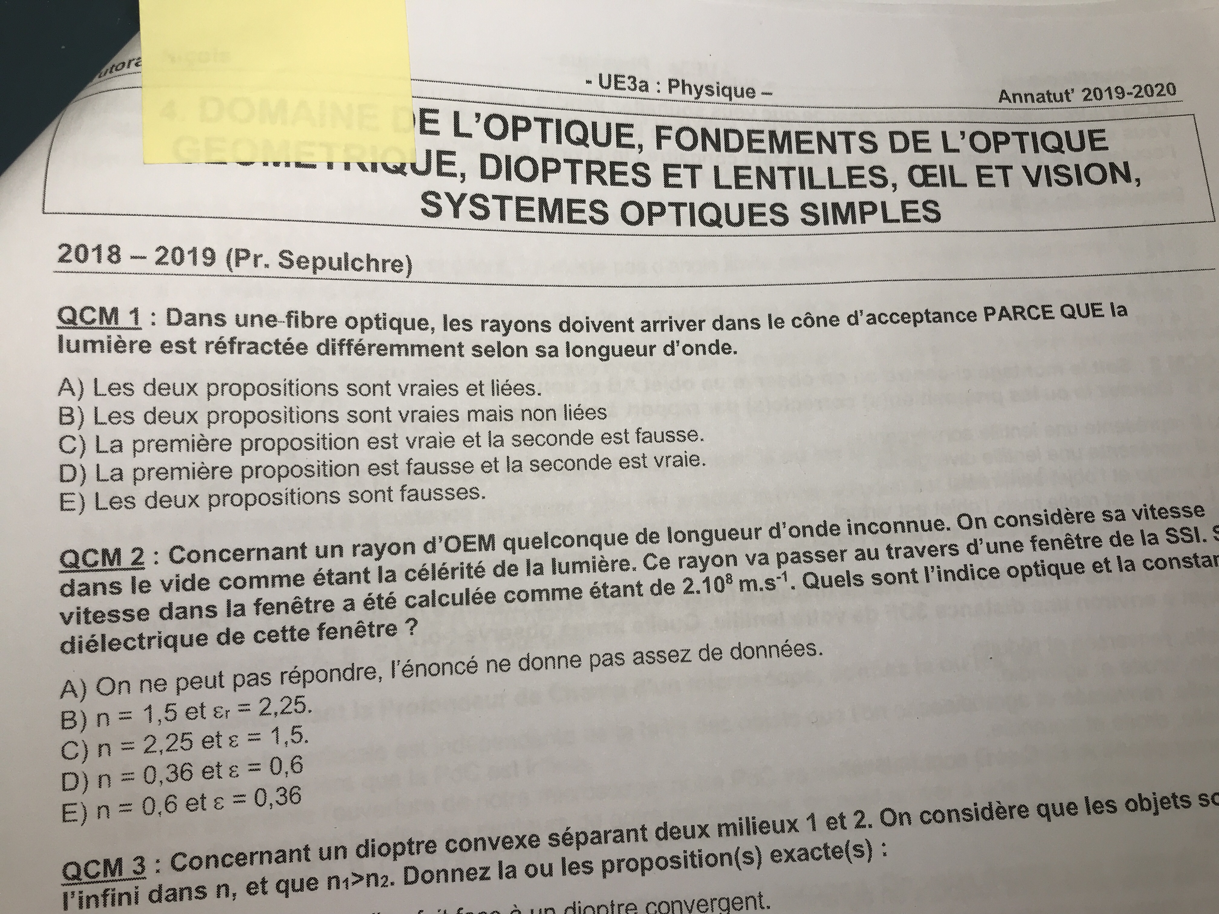 Donc quand tu assembles 2 demi-angles d'acceptance de part et d'autre du plan du dioptre tu obtiens un cône : c'est ça le cône d'acceptance. Si le rayon incident est à l'intérieur de ce cône, la réflexion totale dans la fibre optique sera possible et donc l'information sera transmise sur de très longues distances sans perte d'énergie.