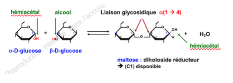 Je te remet l'explication que j'avais mis en dessous de l'image pour comprendre -> " Il peut donc repasser sous forme linéaire puisque le carbone anomérique Cl du BD-glucose est toujours disponible. Il est donc important de comprendre qu'on peut avoir des disaccharides réducteurs lorsque leur carbone anomérique C1 n'est pas engagé dans une liaison."