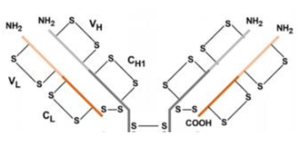Pour les chaines légères -> se trouvent de chaque cotés en extérieur des chaines lourdes et sont liées à ces dernières via des ponts disulfures. On a pareil, une