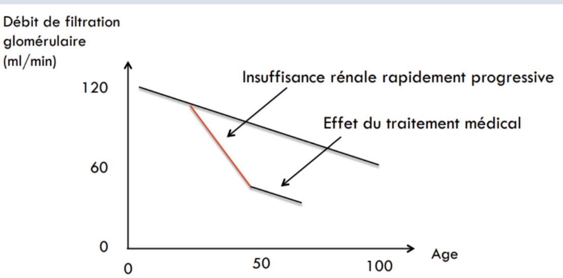se transforme en baisse brutale de DFG (comme tu peux le voir sur le graphique : pente douce = physiologique / pente brutale = pathologique)
