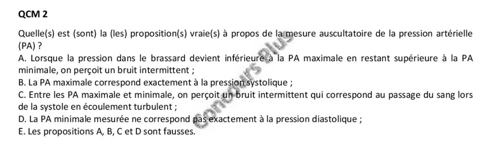Hello, j'arrive pas à comprendre pourquoi l'item C est vrai, car pour moi entre les PA max et PA min, la circulation en systole est redevenue laminaire et non turbulent.