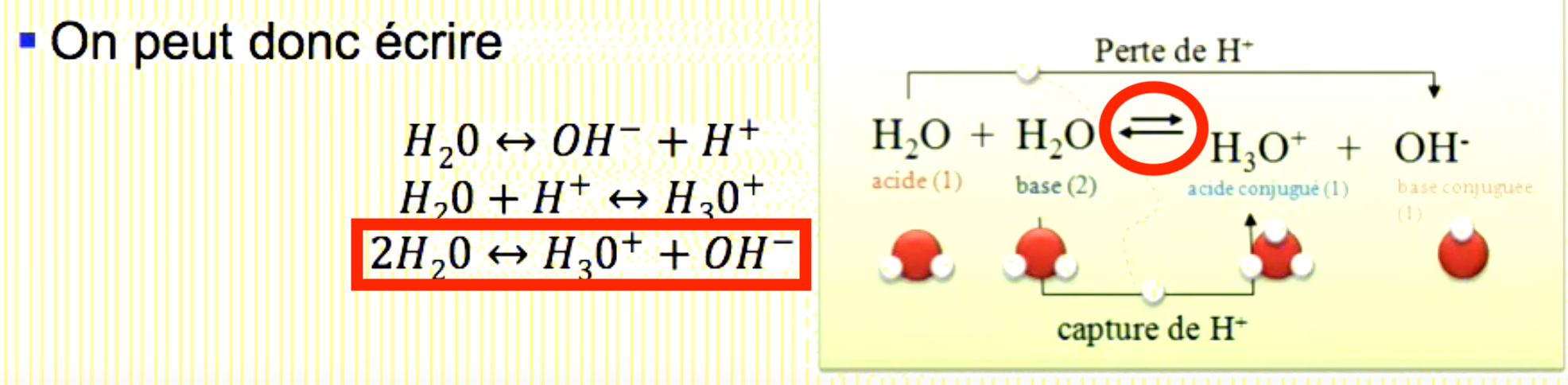 :arrow: 2H20 <-> H30+ + OH- est bien réversible.