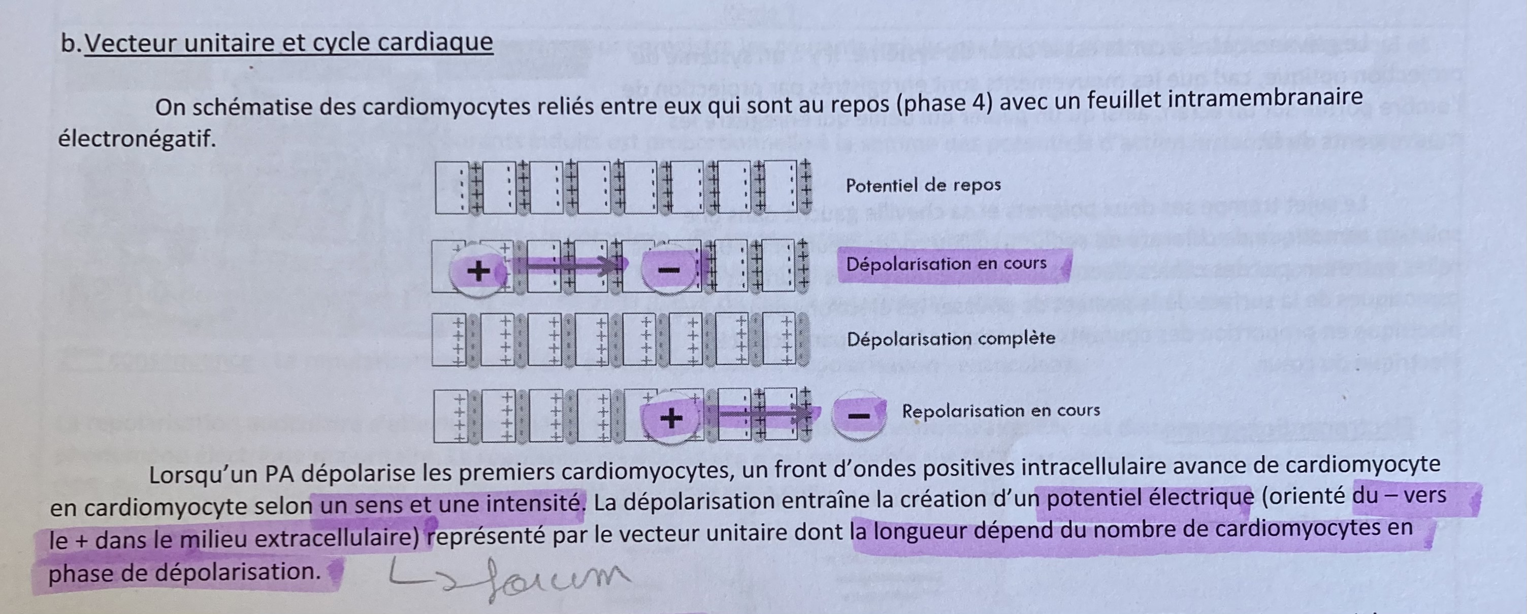 Alors ce passage n'est pas très clair... En fait cela signifie simplement que le vecteur unitaire (flèche) est orienté du - (du MEC) au + (du MEC) et cela ne change pas : même au moment de la repolarisation le vecteur unitaire va toujours du moins vers le plus.