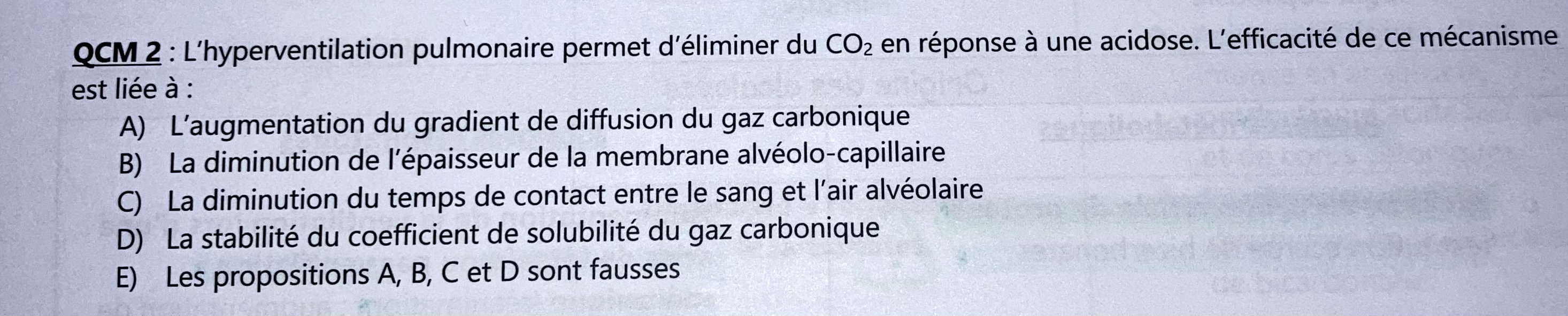 Pourquoi ici la D est fausse ? Alors que dans la correction nous dit que le coefficient de solubilité du gaz carbonique ne change pas...