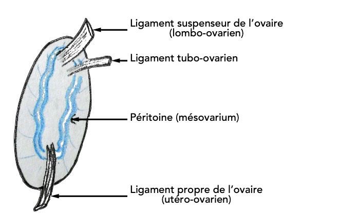 L'ovaire n'est pas péritonisé ++ attention, mais il y a autour de son hile une ligne de réflexion péritonéale qui vient du mésovarium.