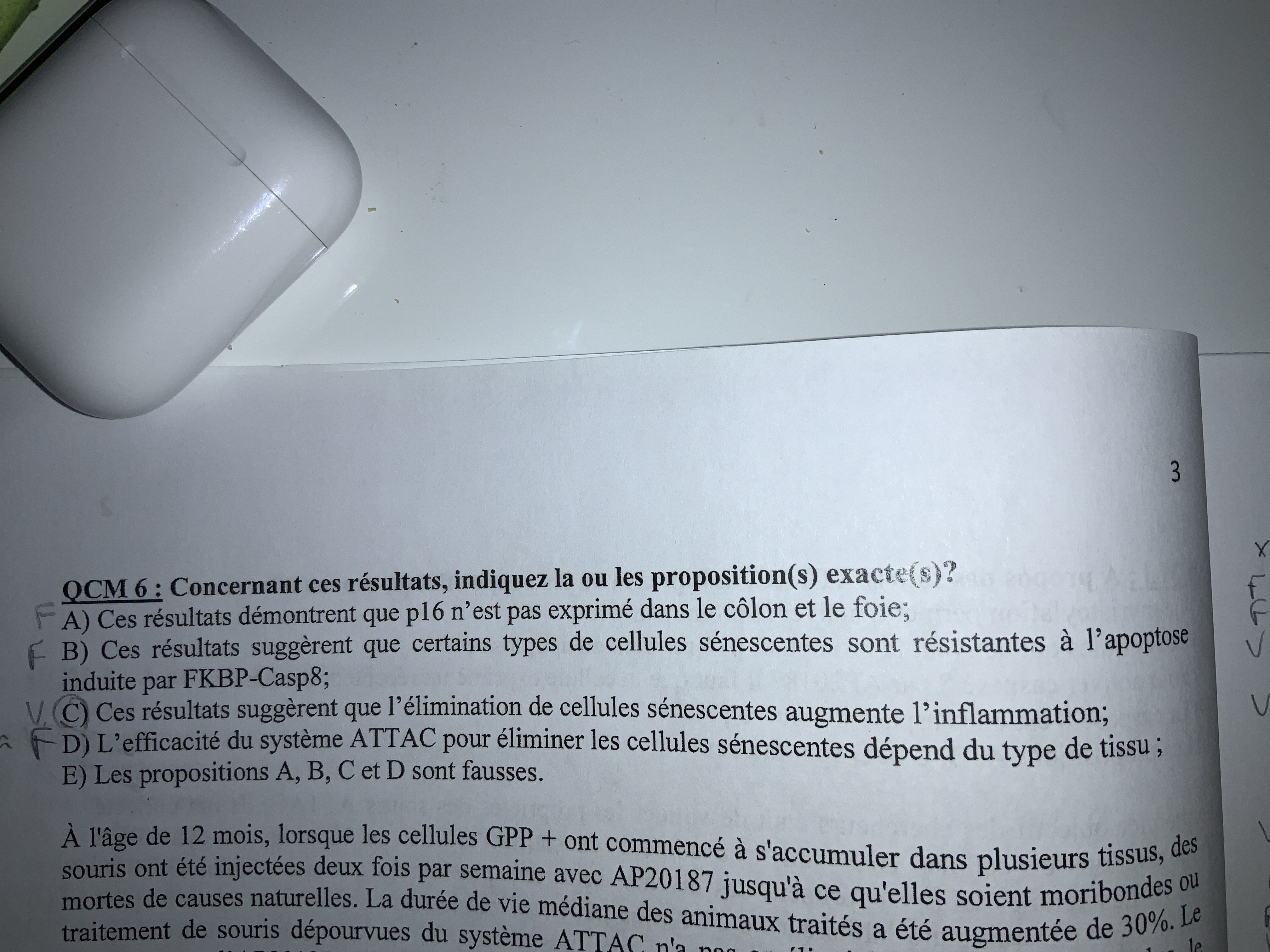 Idem pour le QCM 6B qui est VRAI alors que pour moi c’est TOUTES less cellules sénescentes qui sont résistantes à l’apoptose et pas « certains types »