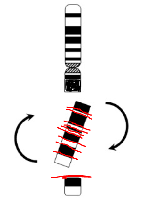 Ca se produira quand un chromosome subit une inversion, c'est à dire qu'une portion de K va se retourner comme ceci :