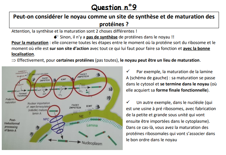 par rapport au qcm 6 "Dans certaines maladies, un récepteur de la membrane plasmique n’est plus fonctionnel. Dans la majorité des cas, cela provient d’une modification du récepteur qui n’est pas adressé correctement à la surface de la cellule. Les protéines anormales s’accumulent à leurs sites de synthèse et de maturation. Ces sites peuvent être", je ne comprends pas pourquoi le noyau est compté juste puisque la synthèse d'une protéine se fait dans le cytoplasme