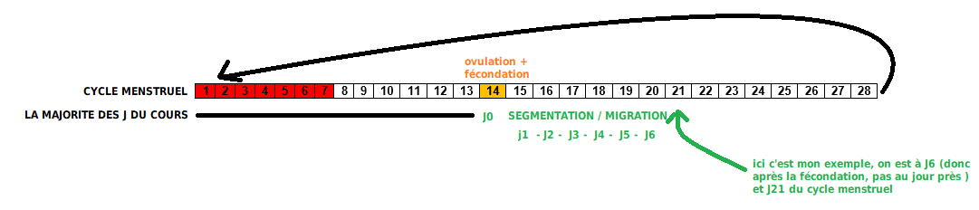 plus clair au niveau des jours du cycle/du développement embryonnaire :