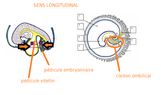 "Le cordon ombilical formé à la suite de la plicature (longitudinale) est formé du pédicule vitellin et du pédicule