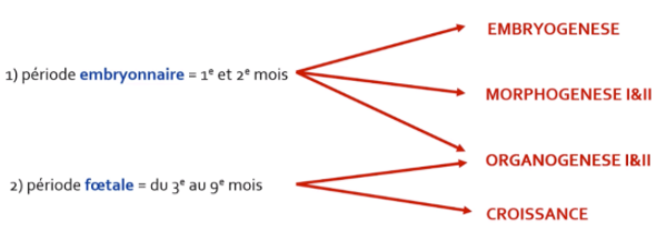 J'ai une petite question à propos des différents évènements (embryogénèse, morphogénèse I, II, organogénèse I, II) qui se produisent au cours de la vie embryonnaire / vie foetale