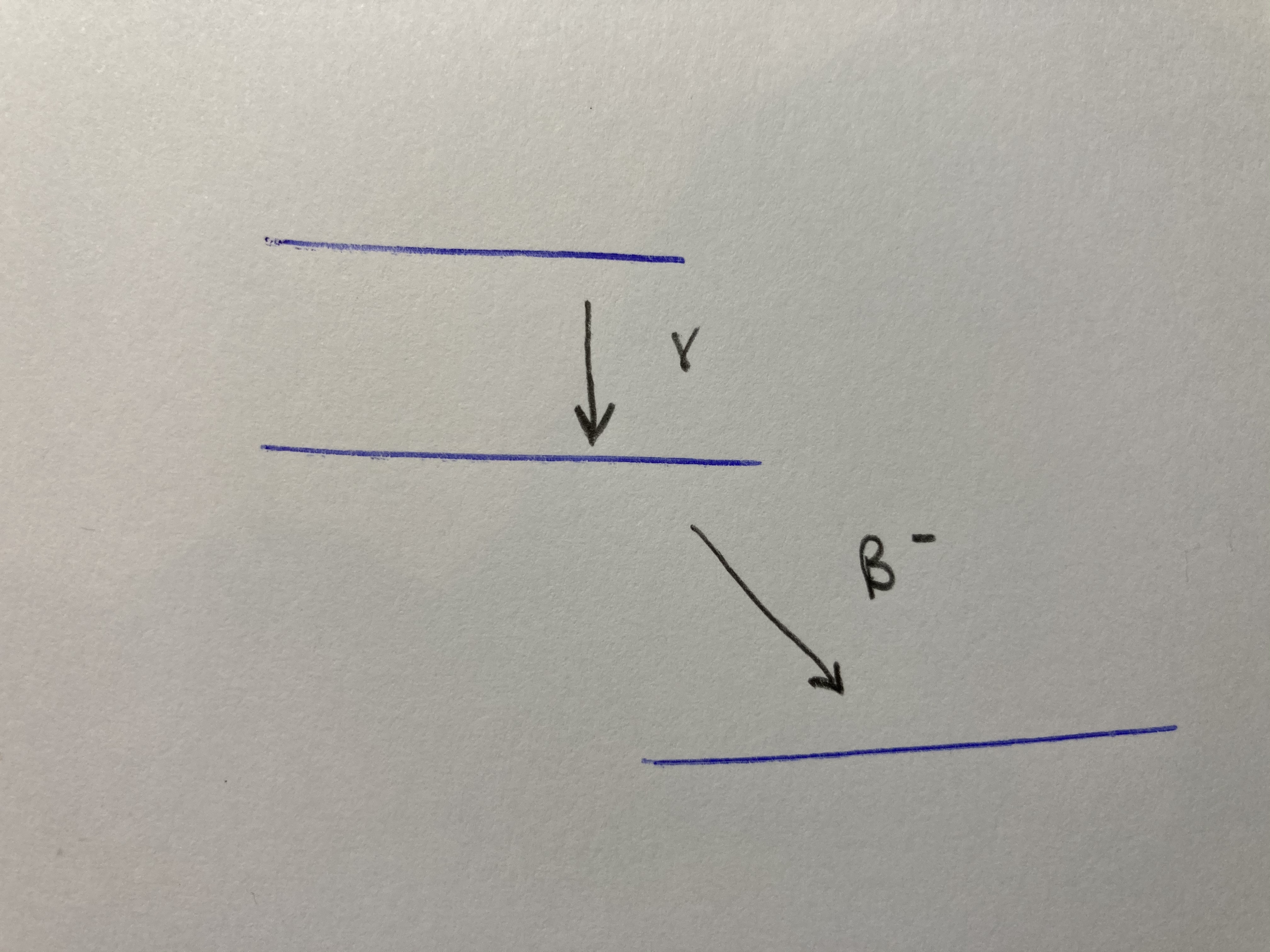 Pour la correction de l'item B de ce qcm, je le pensais faux étant donné que dans l'énoncé il y'a écrit que le photon gamma intervient avant la transformation (B- ici) du coup je pensais plus à ce genre de spectre :