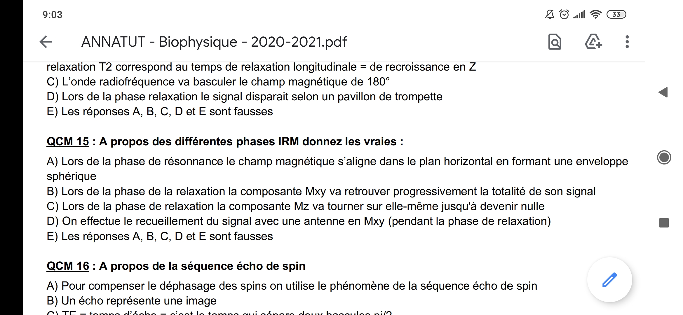 cookie-klaus a écrit:Slt, pour le qcm A est ce que c'est pas une forme de Demi-sphere ?