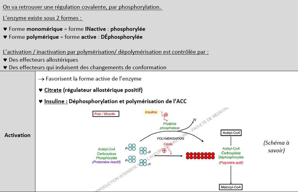 Dans un des qcms de la prof, on demandait les éléments qui permettait la polymérisation de l'ACC et dans la correction il y avait notamment le citrate mais c'est uniquement l'insuline qui permet sa déphosphorylation donc qui l'active et sa polymérisation ?