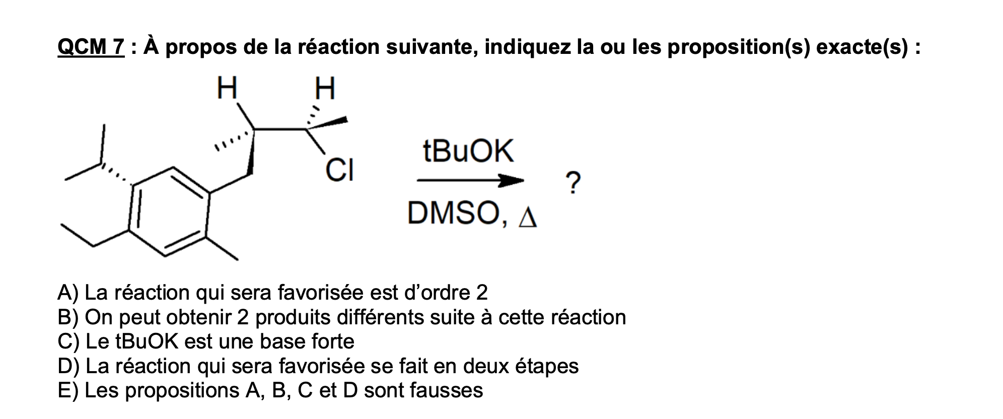 je ne comprends pas pourquoi on peut avoir 2 produits pour cette réaction, la justification est "B) Vrai : soit sur la liaison qui est dans le plan à gauche du chlore, soit celle qui est en avant du plan sur la droite" mais je ne comprends pas à quoi ça correspond, la réaction est stéréospécifique donc on a que 1 stéréoisomère et donc qu'1 produit ?