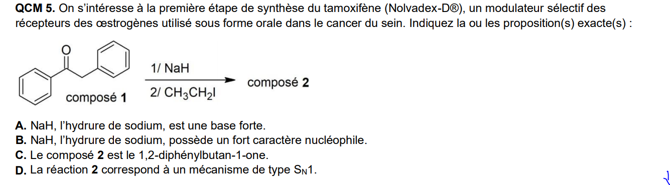 Mais encore une fois tu ne pouvais pas deviner que l'on allait former un alcoolate qui allait faire une SN ensuite car la réaction n'est plus au programme ... Donc ne te prends pas trop la tête dessus
