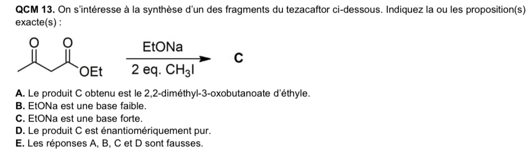 La correction dit qu’il s’agit d’une réaction de formation des énolates. Seulement, le prof n’en a jamais parlé en cours. Un QCM comme ça peut il tomber à l’examen ?