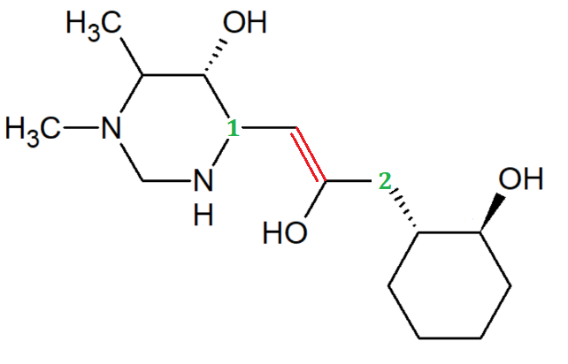 Partie en bas : le H du carbone double liaison avec le O du carbone double liaison