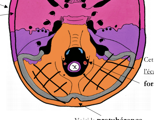 Alors...j'ai un peu fait des recherches et j'ai trouvé qu'on considérait que l'écaille de l'occipital c'était en arrière ET au-dessus du foramen magnum.