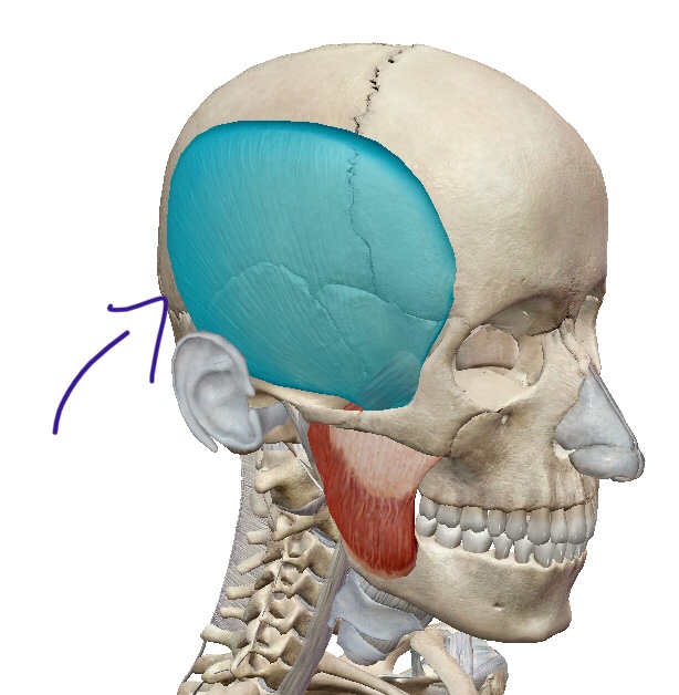 La fosse temporale c'est le genre de creux formé en regard de l'os temporal, plus ou moins au-dessus et en arrière de l'os zygomatique. Dans cette fosse se trouve le muscle temporal.