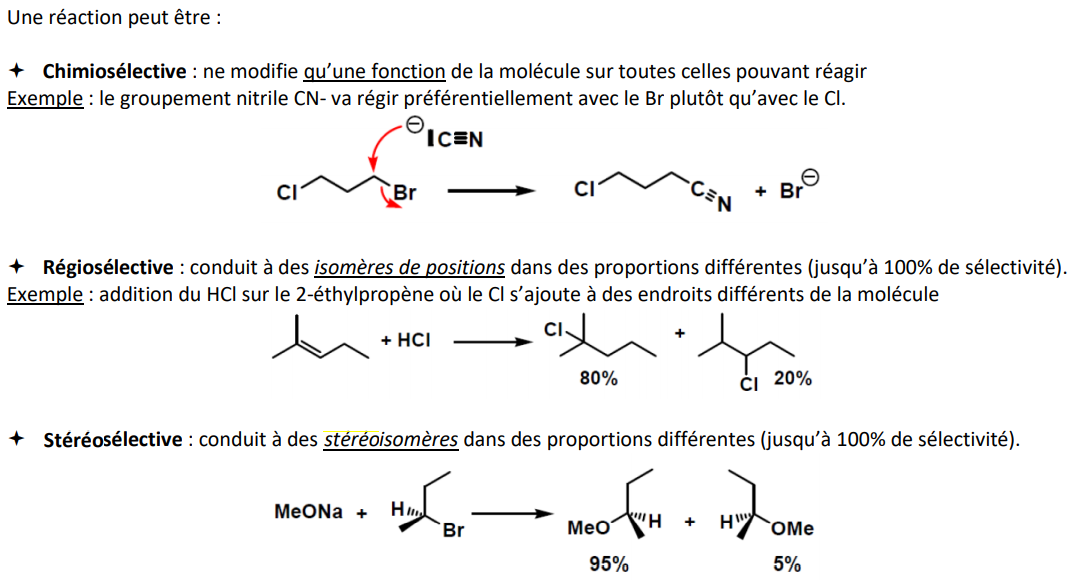 Mais le mieux c'est de regarder les annales pour voir ce que le prof fait tomber, en général il demande pas trop si telle réaction est stéréosélective ou stéréospécifique ou quoi, parce qu'il est conscient que ça pose problème et que parfois ça peut être ambigu ! Donc en vrai apprenez ce que vous pouvez, mais si vous n'arrivez pas à connaître toutes les caractéristiques de chaque réaction c'est pas grave non plus ! Vous raterez pas non plus 6 QCM à cause de ça vu que c'est peu demandé ahah, puis le prof essaiera quand même de faire un truc pas trop compliqué comme les années précédentes.
