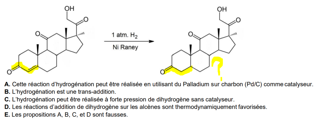 Ducoup Je ne comprends pas pourquoi l'item D est vrai alors que l'on casse un effet mésomére (surligné en jaune à gauche) qui permet donc la stabilité de la molécule. Donc cela déstabilise la molécule non ?? et si ca déstabilise c'est thermodynamiquement pas favorisé ducoup ??