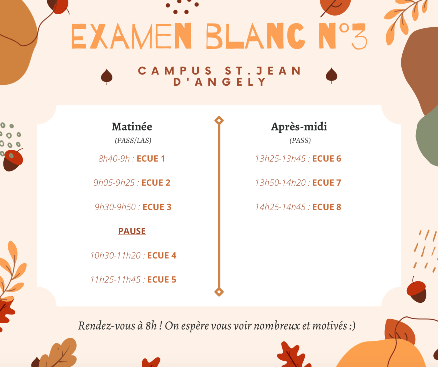 Les tuteurs vous ont préparé un Examen Blanc de qualité ! Celui-ci se déroulera samedi 13 Novembre sur le Campus de Saint-Jean D'angély !