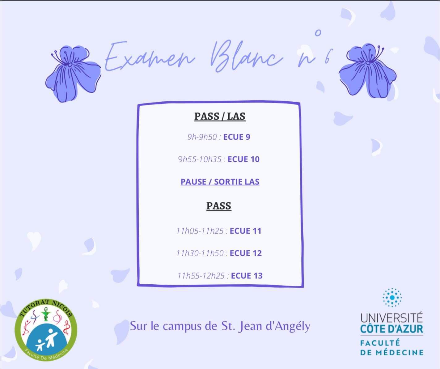 Afin de vous entrainer une dernière fois avant l'examen, les tuteurs vous ont préparés le 6ème Examen Blanc. Celui-ci aura lieu le samedi 2 avril sur le campus de Saint Jean d'Angely 🛎.